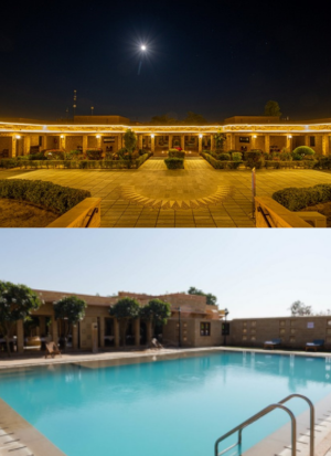 Rooms at Hotel Rawal Kot are well equipped, with all modern comforts and requirements. A close knit team of highly efficient and intuitive staff is at your service round the clock. Drawing from the concept of a traditional Rajasthani haveli Hotel Rawal Kot has numerous terraces providing a spell binding vista. A soothing dip in the tastefully located swimming pool allows guests to watch the Jaisalmer Fort change colours from sunrise to sunset].On offer in the restaurant are international and Rajasthani favourites, and yet another breathtaking view of the Jaisalmer fort.